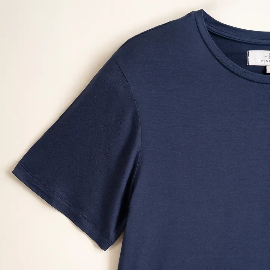 Viskon kumaşın özel dokusunda hem ev hem de dışarıda günlük kullanıma uygun, rahat kesimli, yumuşak dokulu kısa kollu t-shirtler