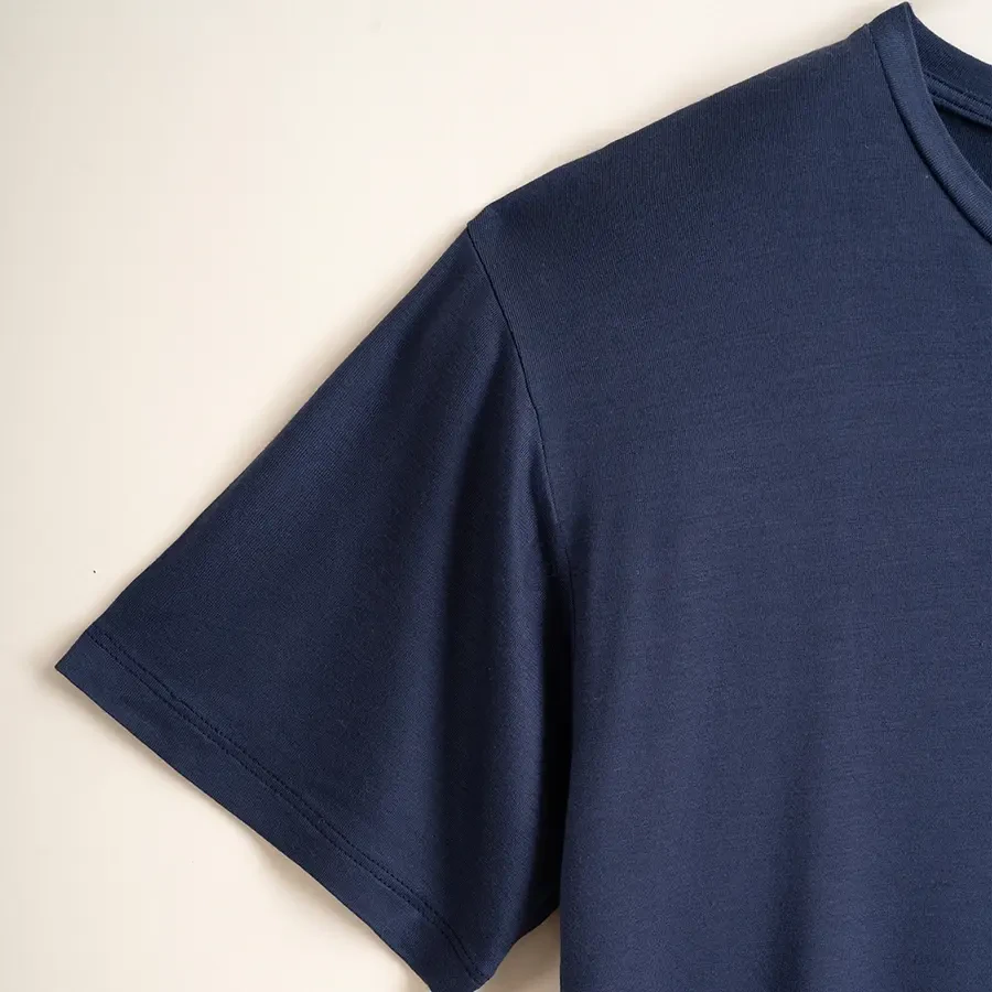 Viskon kumaşın özel dokusunda hem ev hem de dışarıda günlük kullanıma uygun, rahat kesimli, yumuşak dokulu kısa kollu t-shirtler