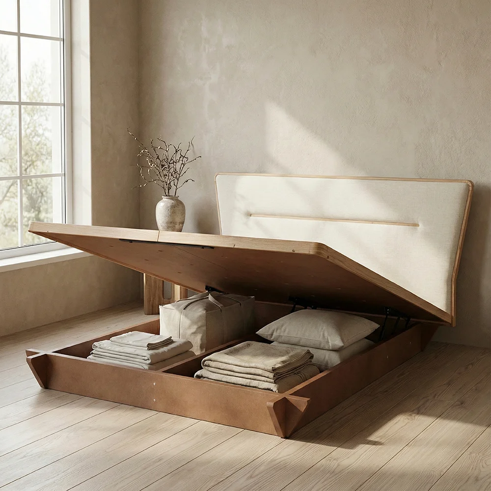 Kestane ağacından üretilen bazalı model ürünümüz hem şık görünümü hem de fonksiyonel depolama alanıyla yatak odanıza güçlü bir tamamlayıcı olur.