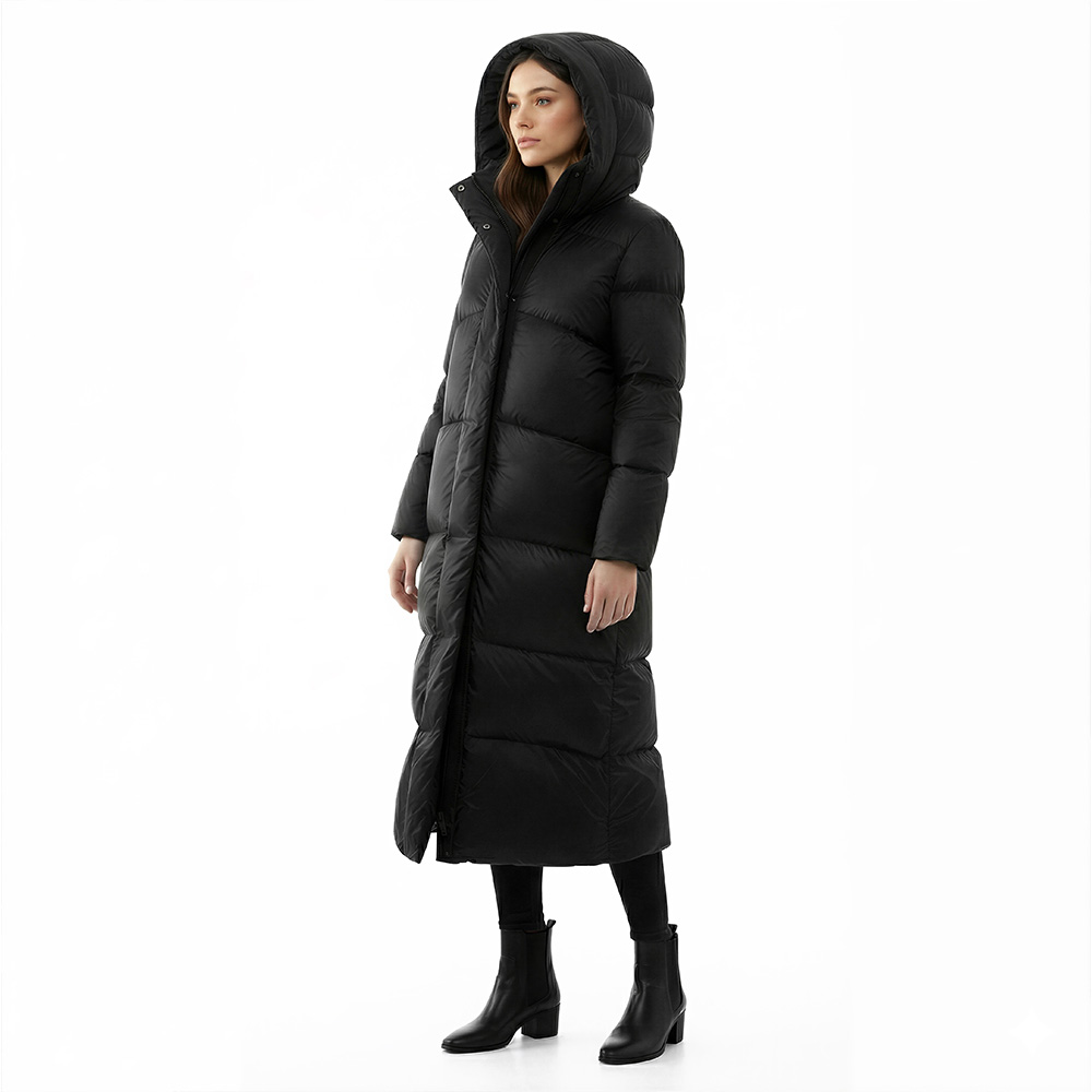 Penelope %100 Kaz Tüyü Boreal Kadın Uzun Mont - Siyah/S