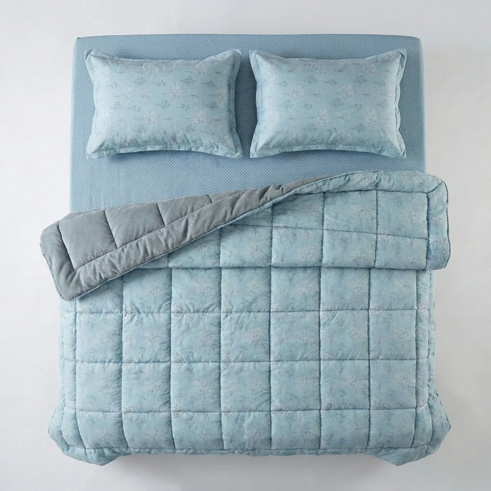 Çift Kişilik Çift Taraflı Welsoft Comforter Yorgan Seti Mavi 195x215 cm - Dormio Soft Bloom Serisi