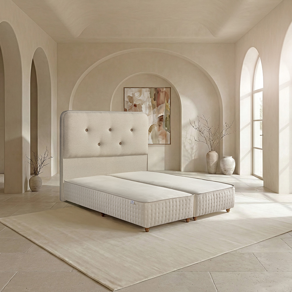 Victorian baza, dayanıklılık, estetik ve doğallığın mükemmel birleşimini sunar. Çam ağacından üretilen kasa, kayın ağacından özenle tornalanmış ayaklar, çift yay sistemi ile desteklenen iç yapı ve Doğal pamuk ile kenevir lifi dolgusu hepsi bir araya gelerek üretilmiştir.