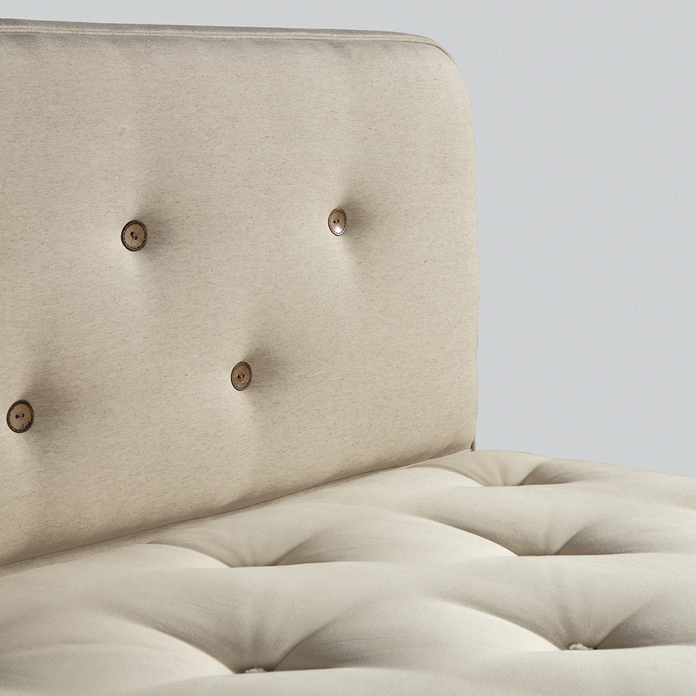 Çam ağacından üretilen kasa, kayın ağacından özenle tornalanmış ayaklar, çift yay sistemiyle güçlendirilen iç yapı ve Doğal pamuk ile kenevir lifi dolgusu bir araya gelerek üretilmiştir.