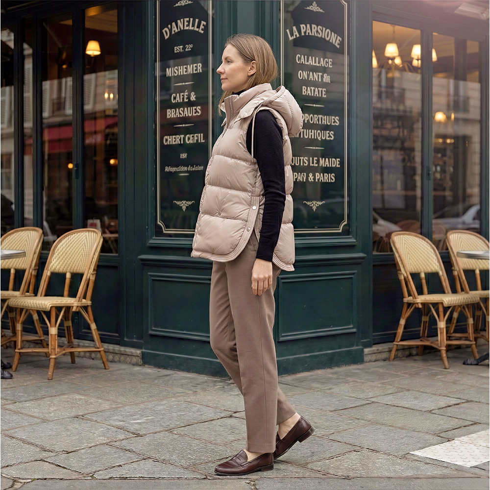 %100 Kaz Tüyü Yelek Bej M- Rita Koleksiyonu