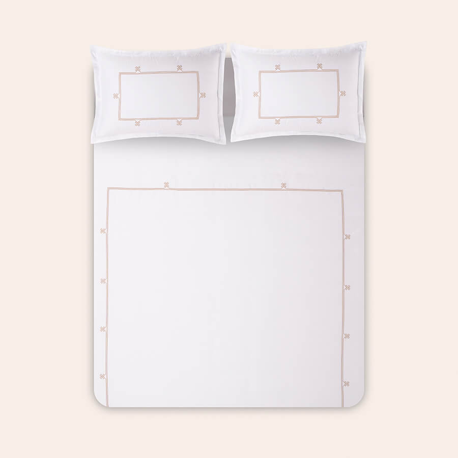 1 Adet nakışlı pamuk saten nevresim ve 2 adet nakışlı Oxford yastık kılıfı