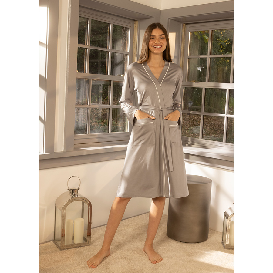 Merserize Viskon Kumaş Sabahlık Gri L - Gaia Serisi