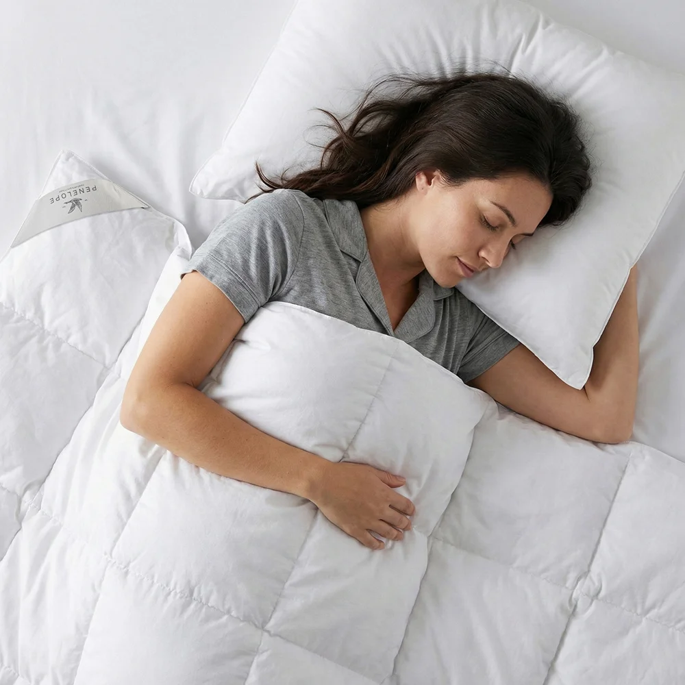 Penelope Bedroom Gold kaz tüyü yorgan, kalitesi ve konforuyla Penelope Bedroom yorgan koleksiyonunun en özel ürünlerinden biridir. %90 oranında birinci sınıf gıdık kaz tüyü ve %10 sırt kaz tüyü dolgusuyla yorgan, maksimum dolgunluğu ve istenen ağırlığı sağlamak için özel olarak tasarlanmıştır.