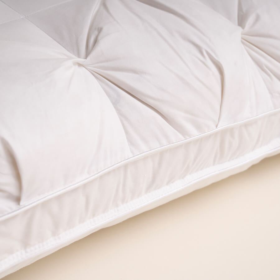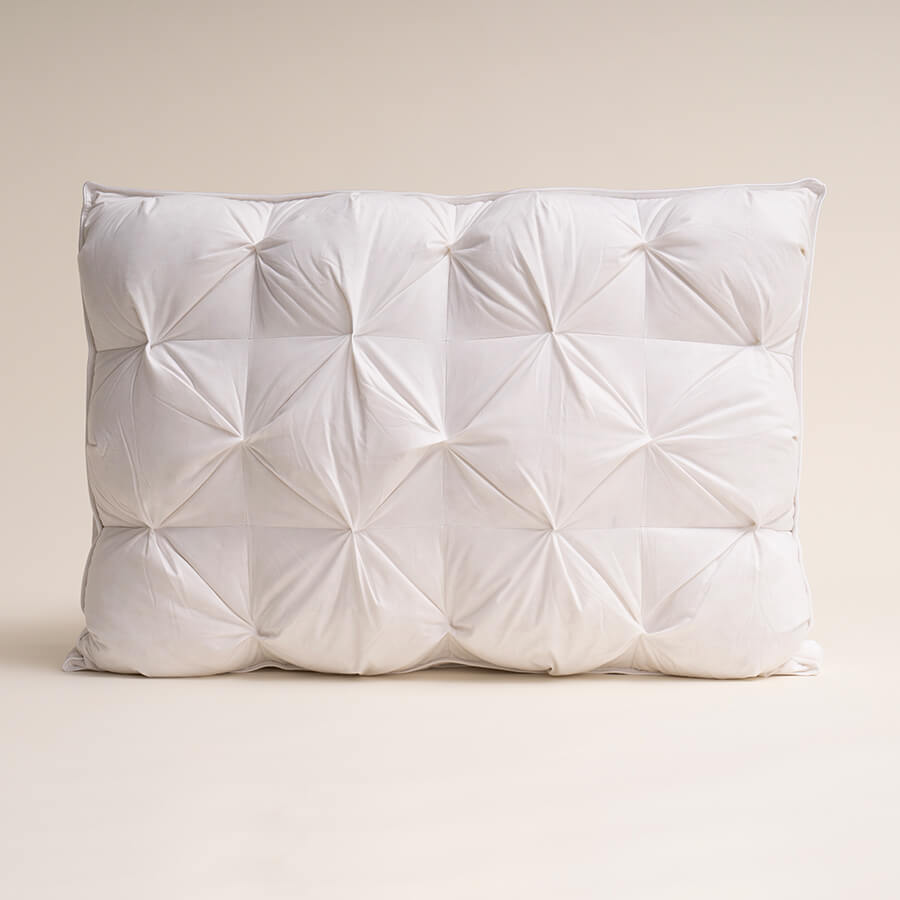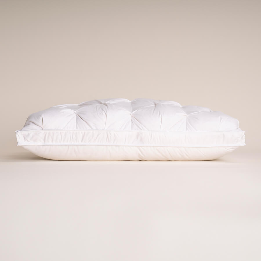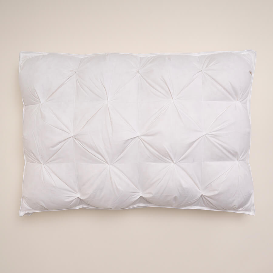 Kaz tüyü, bilinen en sağlıklı, uzun ömürlü ve konforlu dolgu malzemesidir. Aynı zamanda "higroskopi" özelliğine sahiptir, yani ısı ve nem dengesini sağlar. En hafif ve en güçlü ısı yalıtımı sağlayan doğal bir dolgu maddesidir. Kaz tüyleri, gıdık tüyü ve sırt tüyü olmak üzere iki farklı şekilde bulunur. Gıdık tüyü, yastığa hacim ve dolgunluk kazandırırken güçlü bir ısı yalıtımı sağlar. Sırt tüyü ise dayanıklı bir kabarıklık sağlar. Bu yastıkta ise başın ağırlığını desteklemek ve yatar pozisyonda başın yastığa gömülerek destek almasını engellemek için sırt tüyü belli oranlarda kullanılmıştır