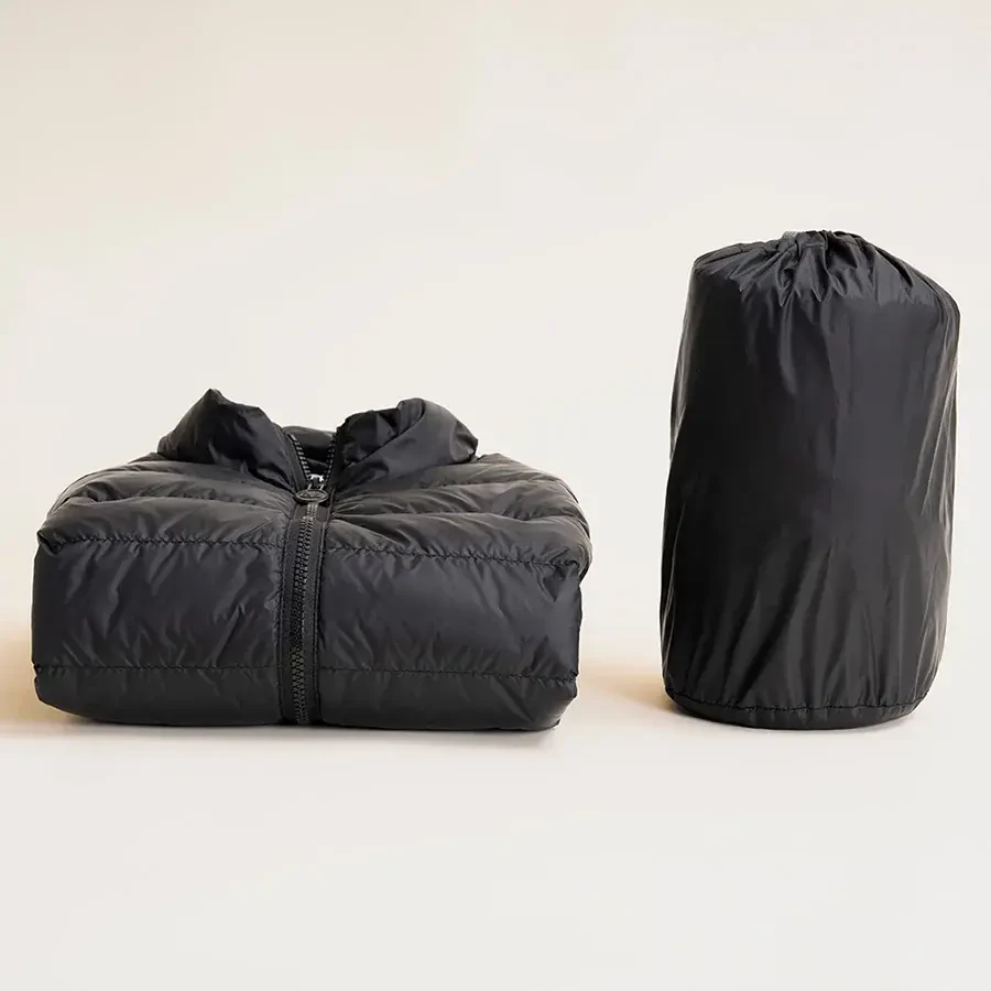 %100 polyamid kumaşlı, %90 gıdık ve %10 sırt tüyü dolgulu hafif kaz tüyü yelektir. Su itici dış yüzeye sahiptir ve taşıma torbasıyla birlikte sunulur.