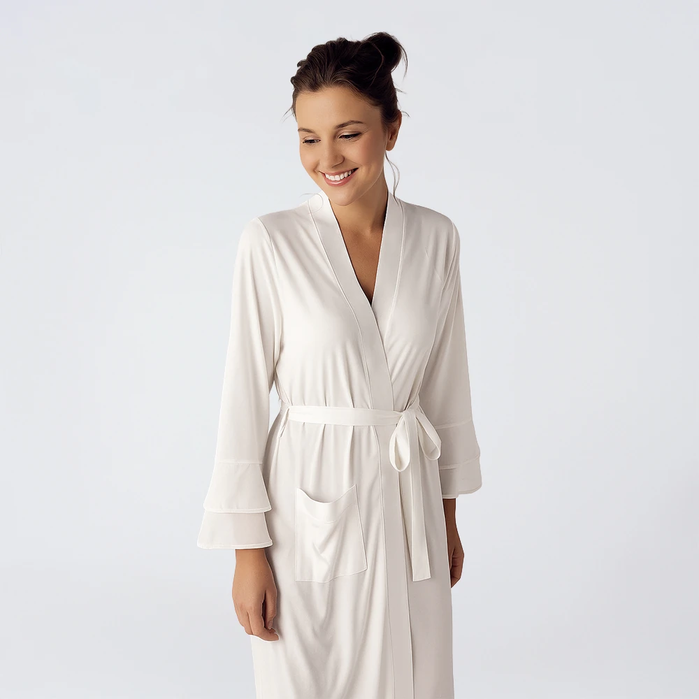 Laura Şifon Saten Detaylı Viskoz Sabahlık - Ekru/S