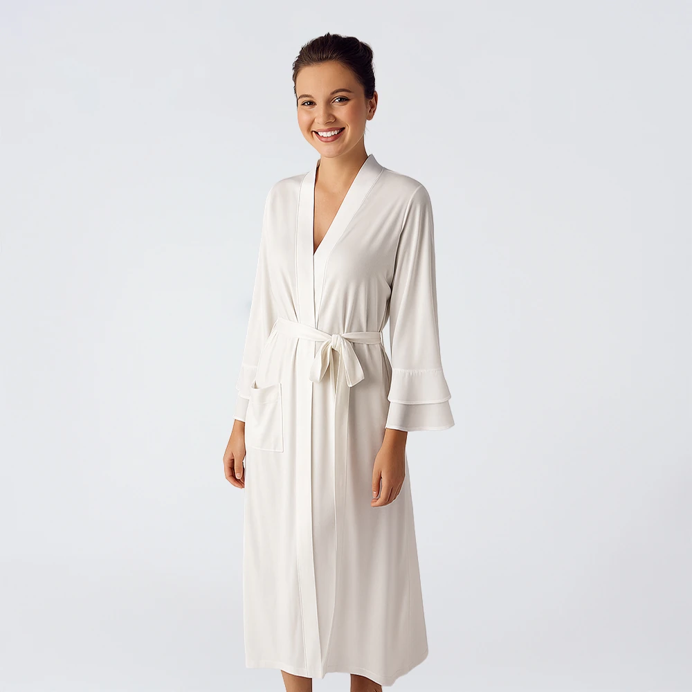%100 Viskon Sabahlık Ekru L - Cool White Serisi
