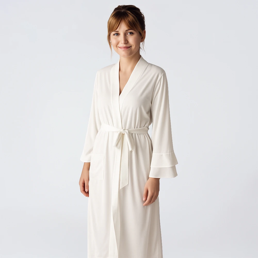%100 Viskon Sabahlık Ekru L - Cool White Serisi