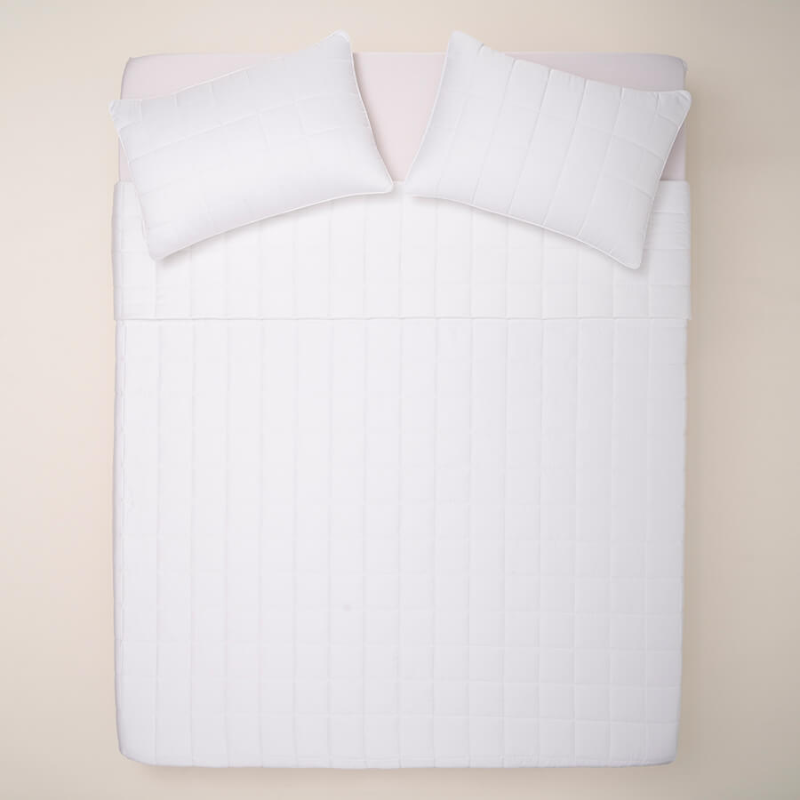 Lia Yatak Örtüsü Beyaz 260x240 ve 2 adet 50x70 kapitoneli yastık kılıfı