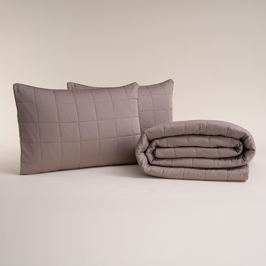 Lia Yatak Örtüsü Taş 300x280 ve 2 adet 50x70 kapitoneli yastık kılıfı