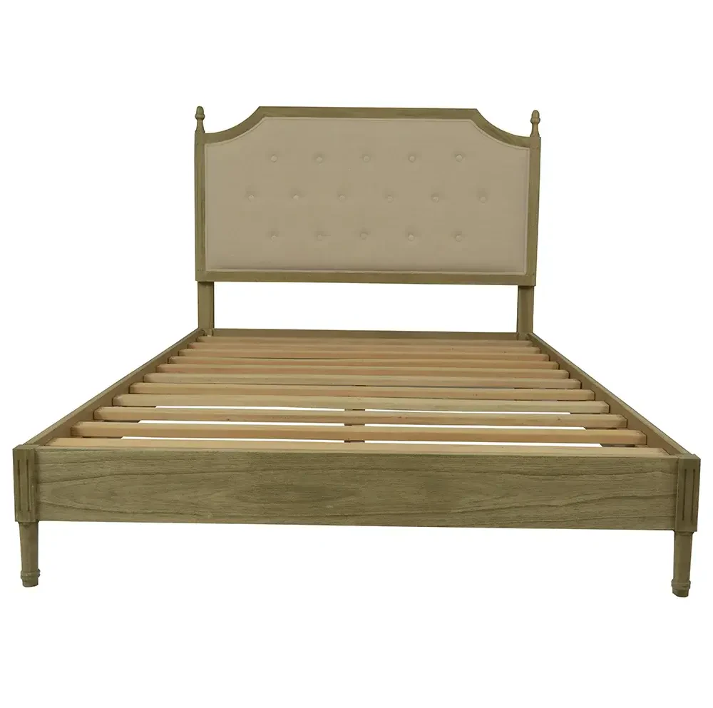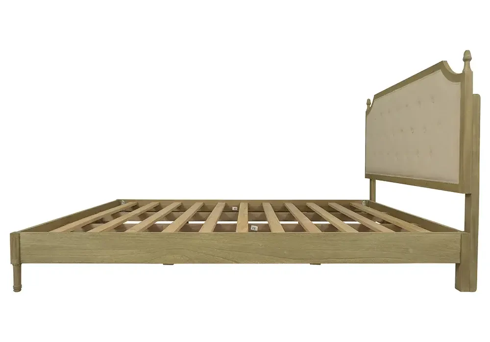 Ahşap kaplama ve kumaş detaylarla tasarlanan bu karyola, dayanıklı Bayur ağacı gövdesi sayesinde uzun ömürlü bir kullanım sunar. Doğal yağlı yapısı, çürümeye ve dış etkenlere karşı yüksek direnç sağlayarak şık ve kaliteli bir mobilya seçeneği oluşturur.