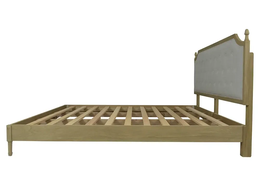 Ahşap kaplama ve kumaş detaylarla tasarlanan bu karyola, dayanıklı Bayur ağacı gövdesi sayesinde uzun ömürlü bir kullanım sunar. Doğal yağlı yapısı, çürümeye ve dış etkenlere karşı yüksek direnç sağlayarak şık ve kaliteli bir mobilya seçeneği oluşturur.