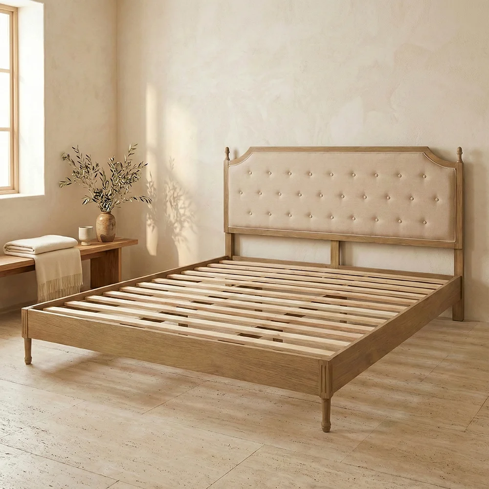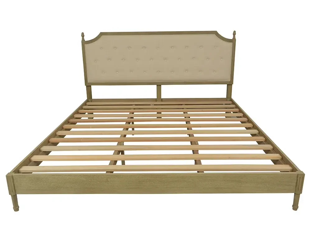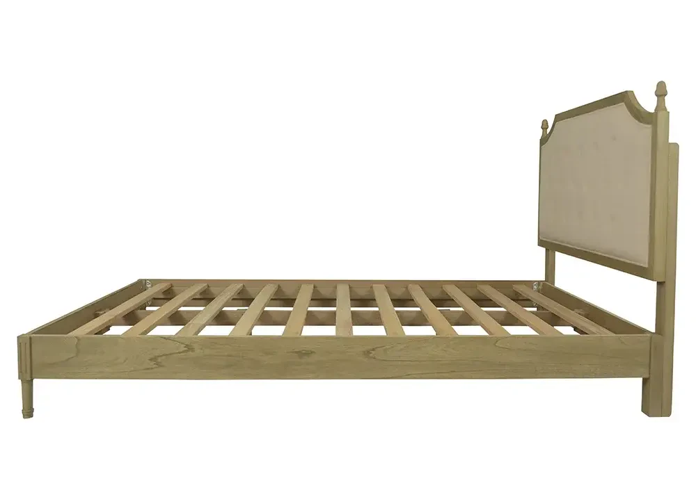 Ahşap kaplama ve kumaş detaylarla tasarlanan bu karyola, dayanıklı Bayur ağacı gövdesi sayesinde uzun ömürlü bir kullanım sunar. Doğal yağlı yapısı, çürümeye ve dış etkenlere karşı yüksek direnç sağlayarak şık ve kaliteli bir mobilya seçeneği oluşturur.