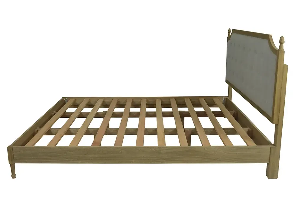 Ahşap kaplama ve kumaş detaylarla tasarlanan bu karyola, dayanıklı Bayur ağacı gövdesi sayesinde uzun ömürlü bir kullanım sunar. Doğal yağlı yapısı, çürümeye ve dış etkenlere karşı yüksek direnç sağlayarak şık ve kaliteli bir mobilya seçeneği oluşturur.