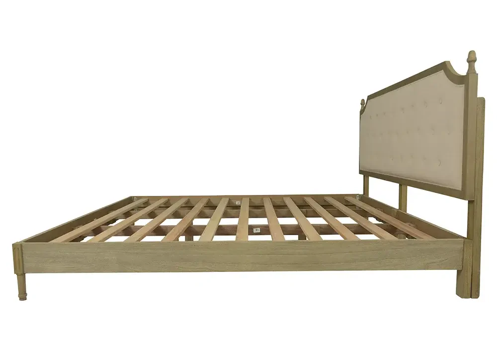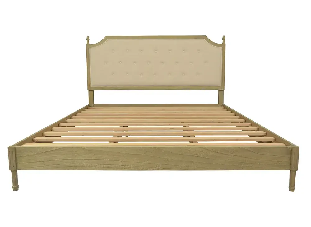 Ahşap kaplama ve kumaş detaylarla tasarlanan bu karyola, dayanıklı Bayur ağacı gövdesi sayesinde uzun ömürlü bir kullanım sunar. Doğal yağlı yapısı, çürümeye ve dış etkenlere karşı yüksek direnç sağlayarak şık ve kaliteli bir mobilya seçeneği oluşturur.