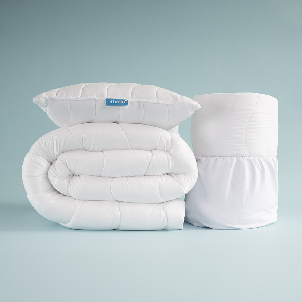Set içeriği: 1 adet 155x215 Yorgan, 1 adet 50x70 Yastık, 1 adet 100x200 sıvı geçirmez etekli yatak alezi.