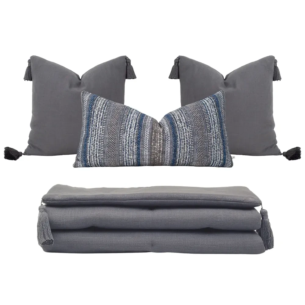 Nora Püsküllü Yatak Üzeri Runner 70x220 cm Koyu Gri