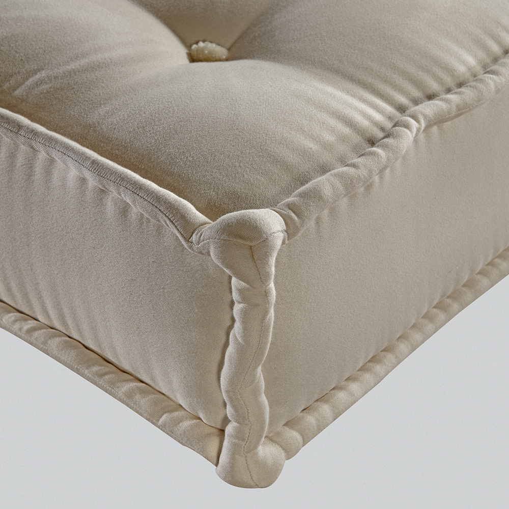 Kenar güçlendirmesi: İç dolguda kullanılan hindistan cevizi lifi, özellikle yatak kenarlarında bir havuz oluşturacak şekilde yerleştirilmiştir. Bu dizayn kenar çökmelerini engeller, oturma ve kenar kullanımında formu korur.