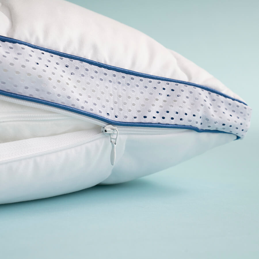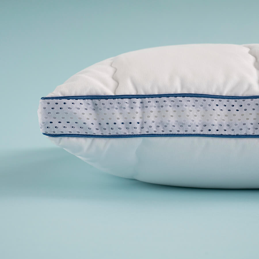 Boncuk elyaf, geçirgen tela ve körük fileler yastığın içerisinde hava sirkülasyonu oluşturur. Baş ve boyun terlemelerini azaltmaya yardımcıdır.