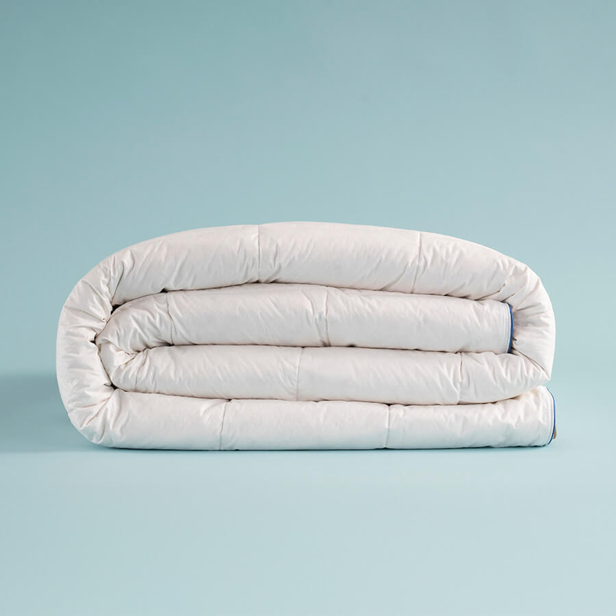 Proaktif etkili olan Clima Downa kaz tüyü yorgan, terlemeden, nefes alan ve serin bir uyku deneyimi yaşamanız için higroskopik etkili geri dönüştürülmüş kaz tüyleri ile tasarlanmıştır.