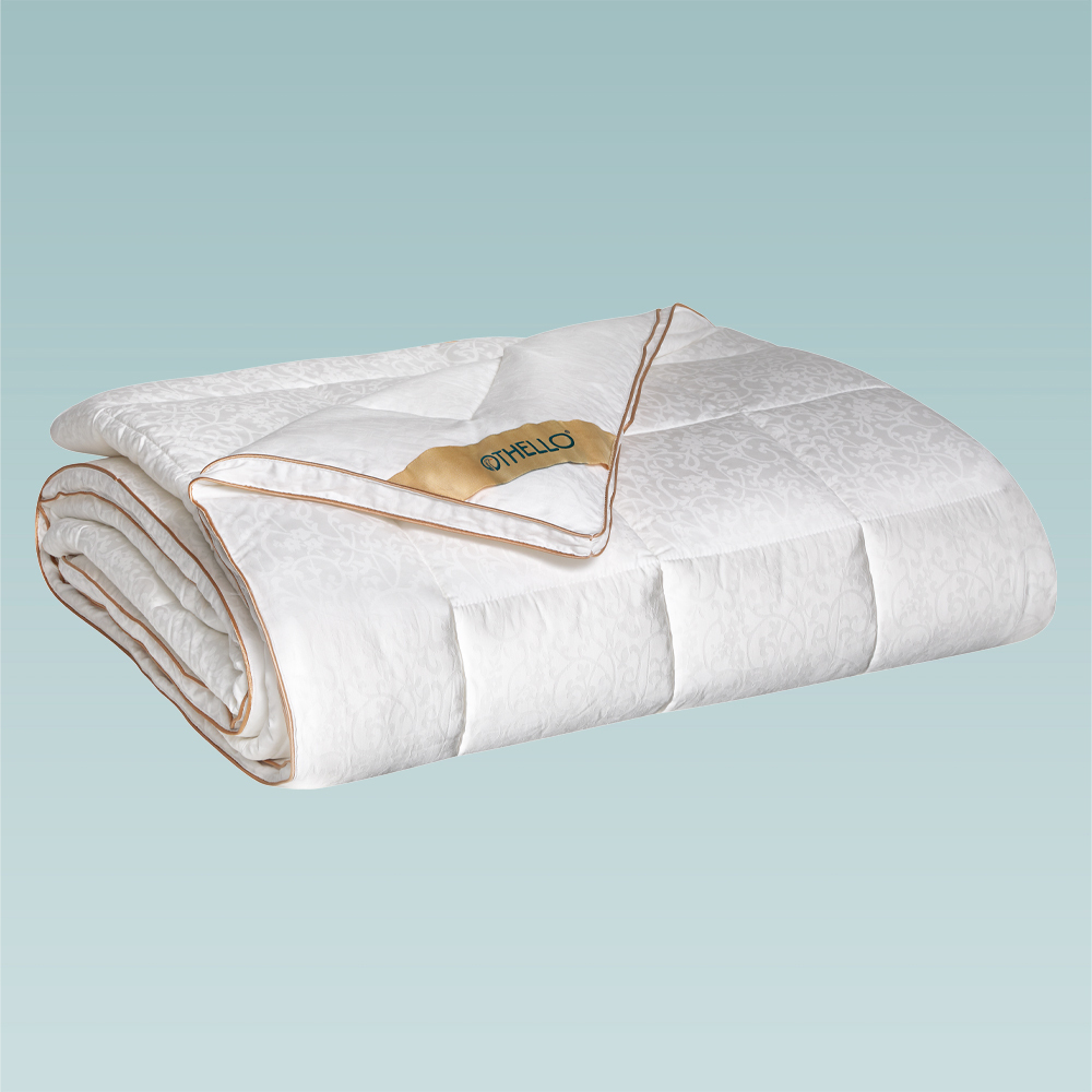 Ekstra yumuşak üfleme dolum tekniğiyle hazırlanmış HCS elyaf dolgulu bu yorgan, hafif ve dolgun bir yapıya sahiptir. Jakarlı pamuk kumaşı ve altın biyeli tasarımıyla şık ve gösterişli bir görünüm sunar; ılık ısı seviyesinde konfor sağlar.