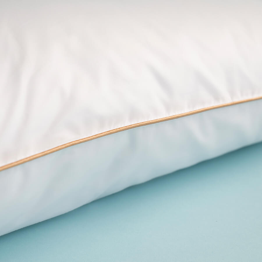 Othello Downa 90 Gıdık 15 Sırt Kaz Tüyü Yastık, üstün kalitesini altın renkli biyeleriyle vurgular. Bu biyeler, markamızın özenle uygulanmış, üst düzey kalite standartlarını yansıtır.