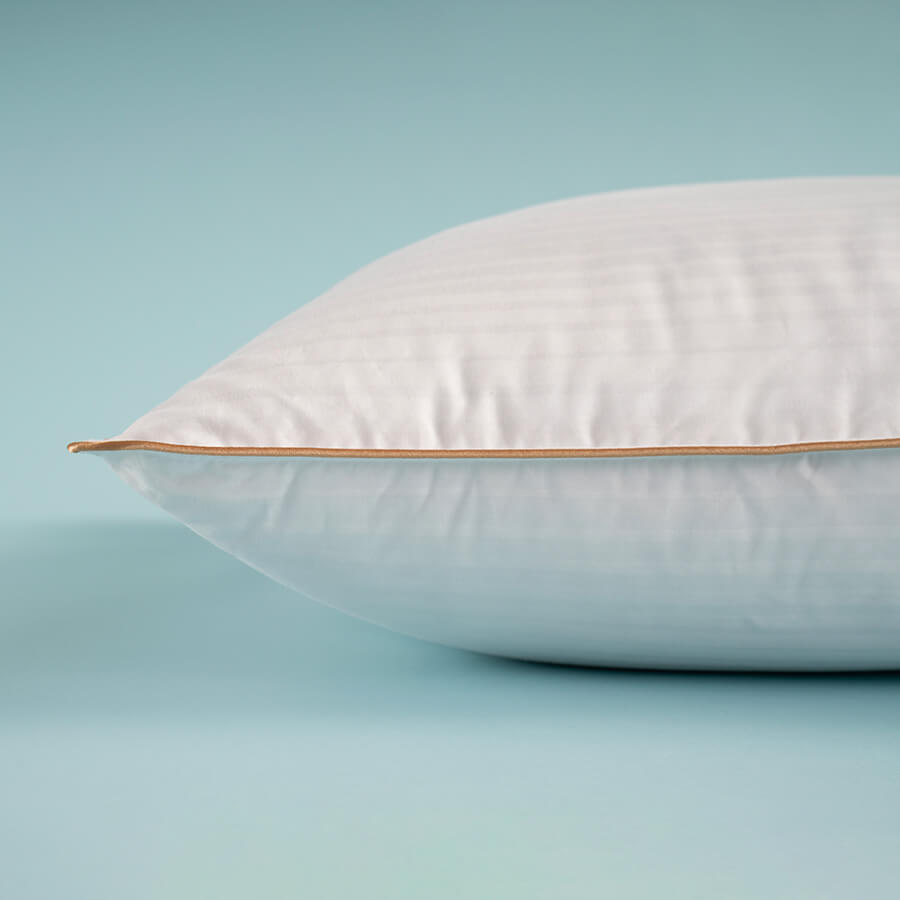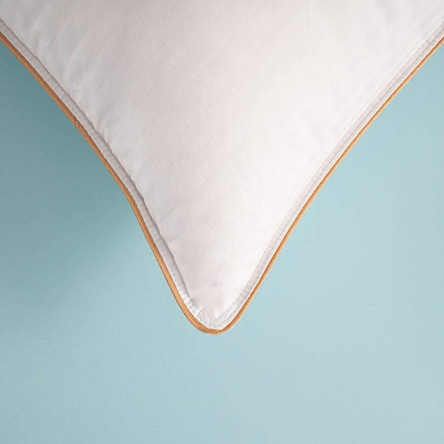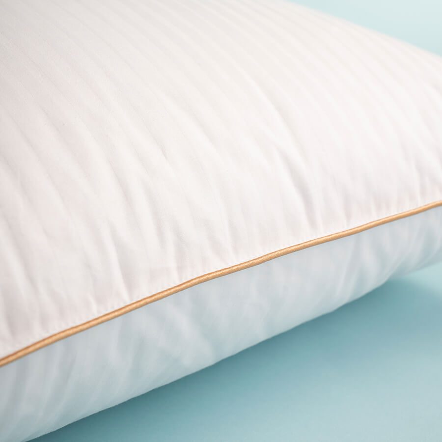 Othello Downa 90 Gıdık 10 Sırt Kaz Tüyü Yastık, üstün kalitesini altın renkli biyeleriyle vurgular. Bu biyeler, markamızın özenle uygulanmış, üst düzey kalite standartlarını yansıtır.