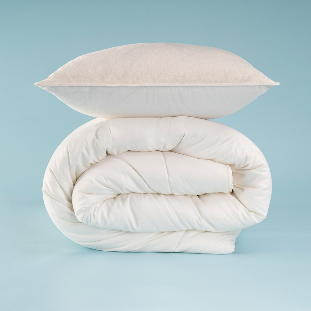 Diğer yorgan ise her iki yüzü de mikro elyaf kumaşlı ve 150gr/m2 dolgusuyla sıcak havaların hissedilmeye başladığı ilkbahar ve yaz mevsimlerinde kullanım için idealdir.