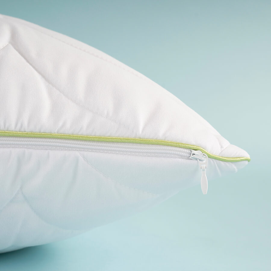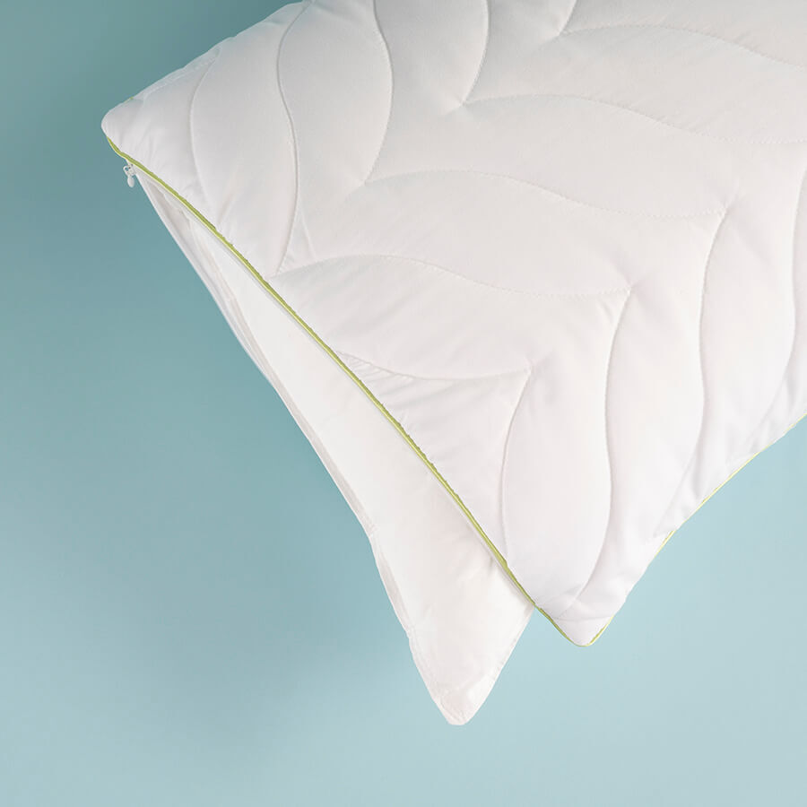 Mucizevi bitki Aloe Vera özü ile geliştirilen dış kumaşı, ipek dokuma hissi veren yumuşak bir kumaştır. HCS Elyaf dolgulu yastık alezi, dolgun ve hacimli görünümü ile kırışmaya karşı dayanıklıdır.