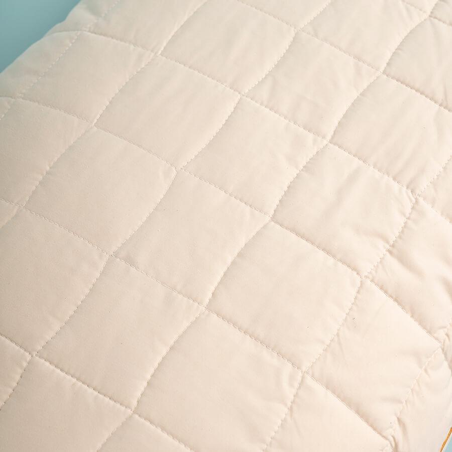 Bej renkli kapitone dikiş desenli yastık alezi, iç yastıktan bağımsız olarak yıkanabilir.