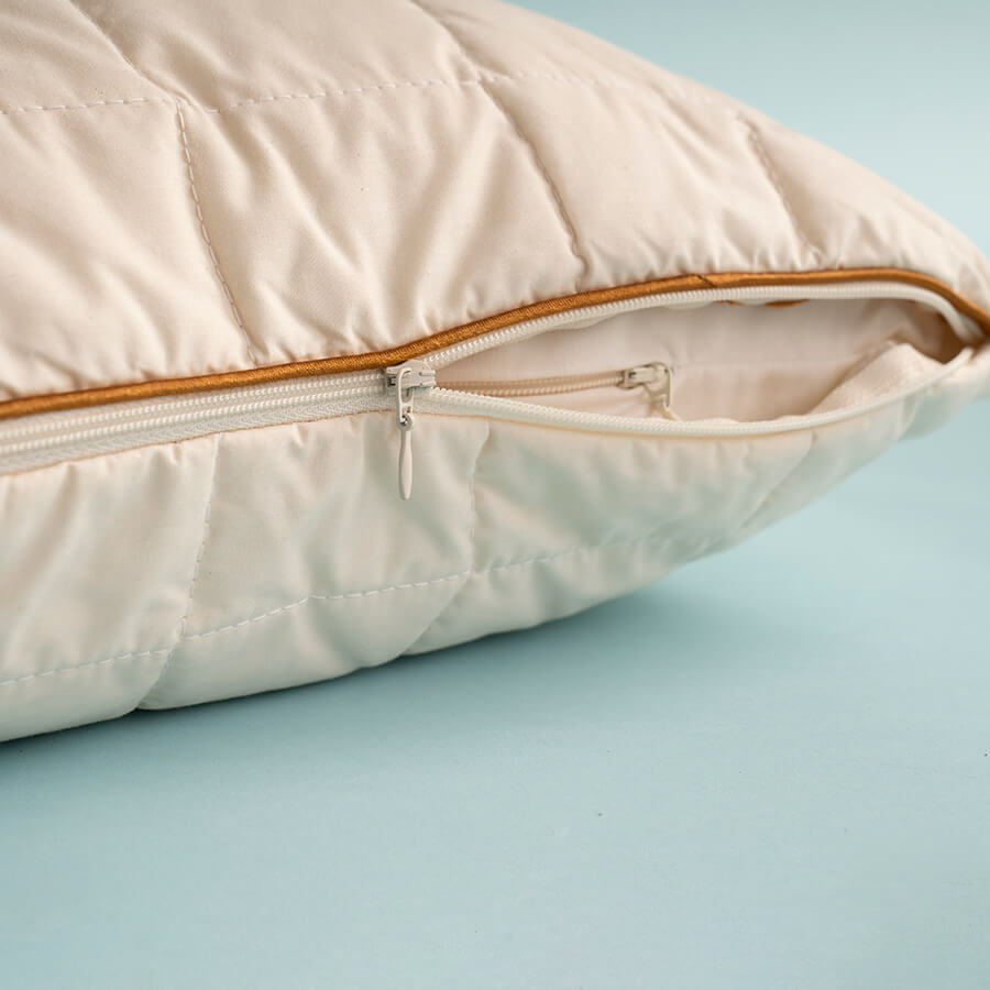Fermuarlı iç yastığı sayesinde içerisindeki İngiliz boncuk yün dolgu malzemesi istenilen yükseklikte ayarlanabilir. Uyku yatış pozisyonuna uygun hale getirilebilir.
