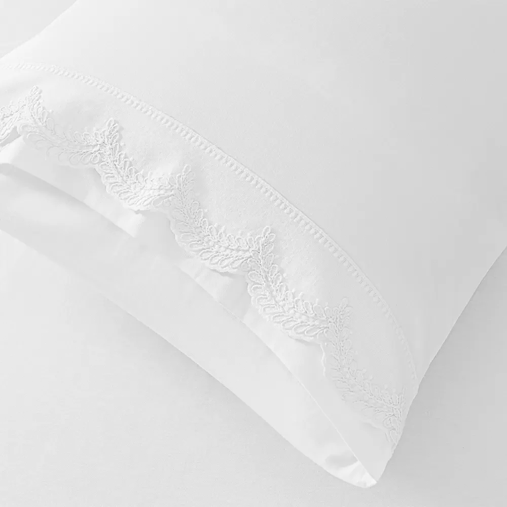 Materyal: 200 TC - %100 Pamuk KumaşPaket içeriği: 1 adet nevresim 240x220 cm1 adet çarşaf 280x300 cm2 adet uyku yastık kılıfı2 adet işlemeli yastık kılıfı