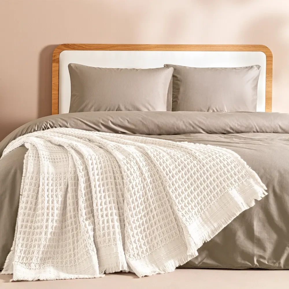%100 Pamuk Dokuma Yatak Örtüsü 240x250 cm Taş - Belinda Serisi