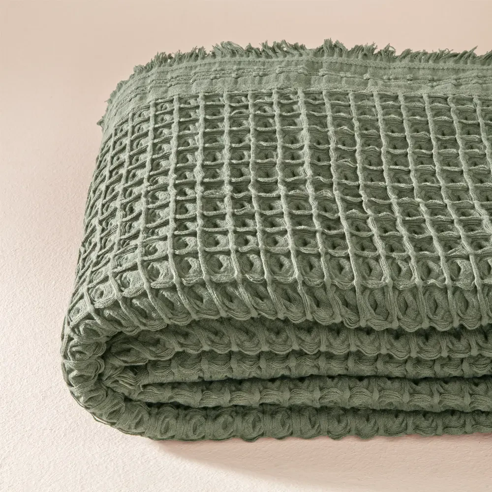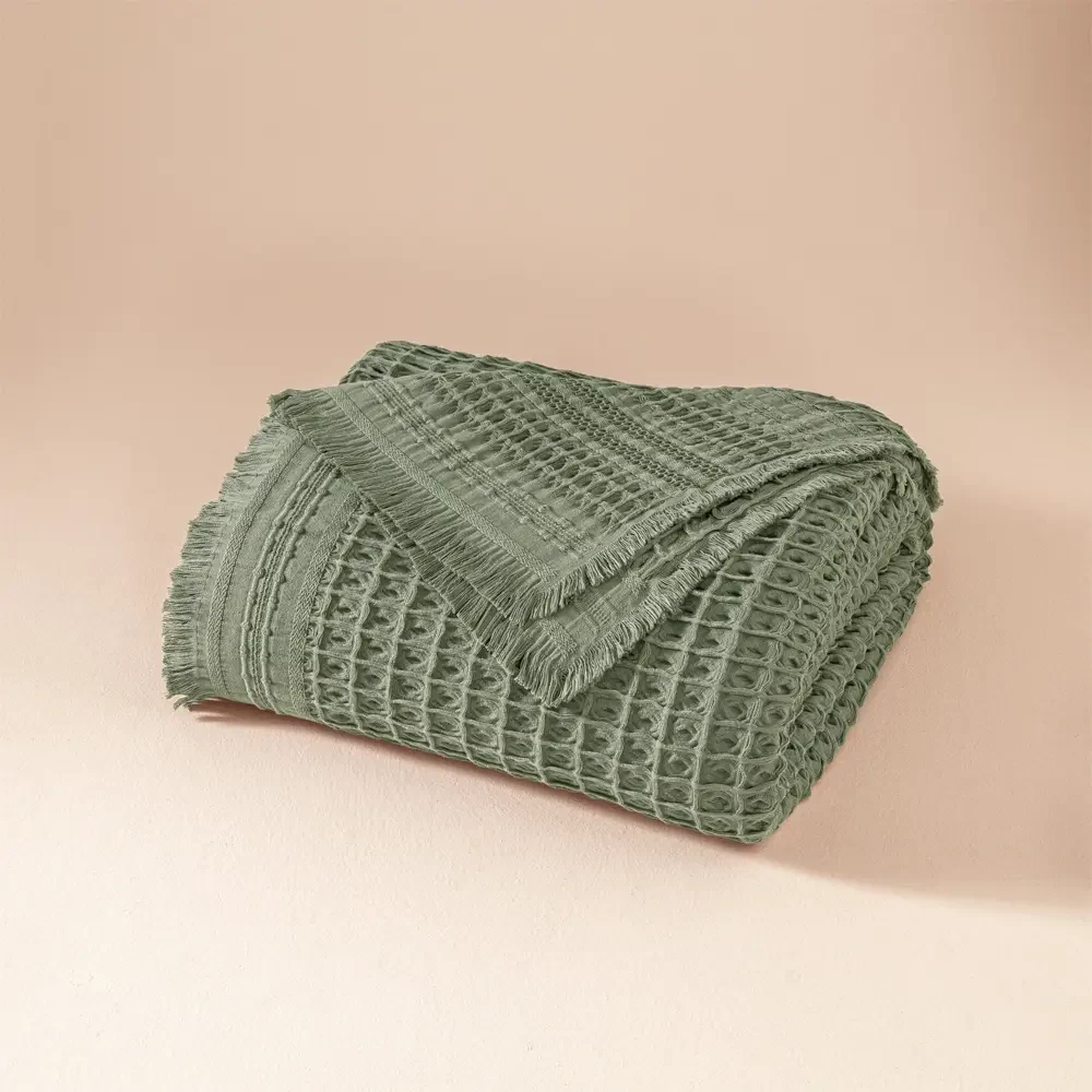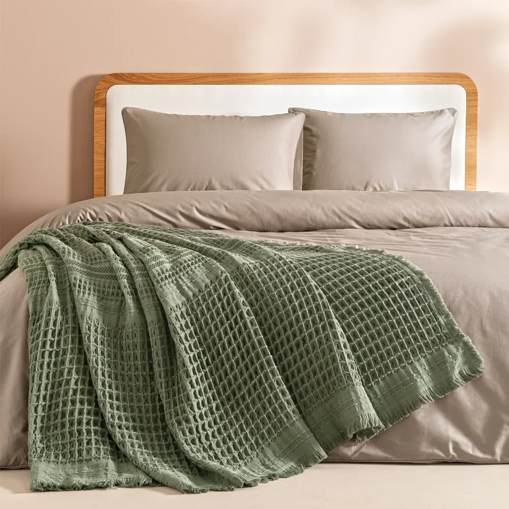 %100 Pamuk Müslin Yatak Örtüsü 220x240 cm Yeşil - Glen Serisi