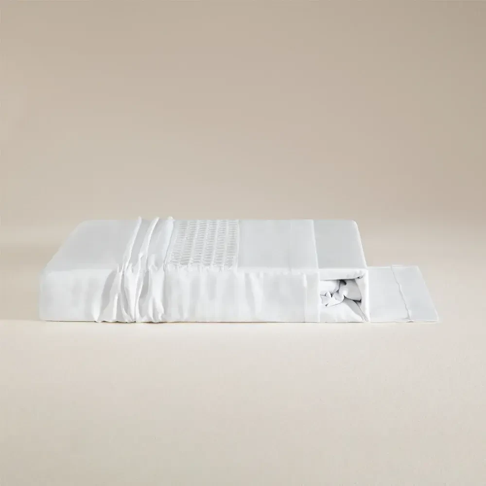 %100 Pamuk Saten Nevresim Seti 260x240 cm Beyaz - Lia Serisi