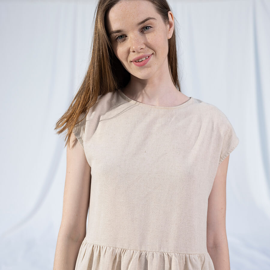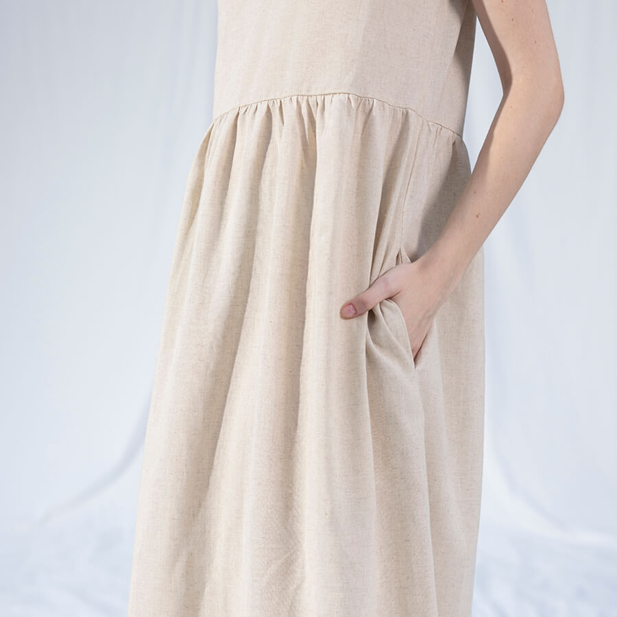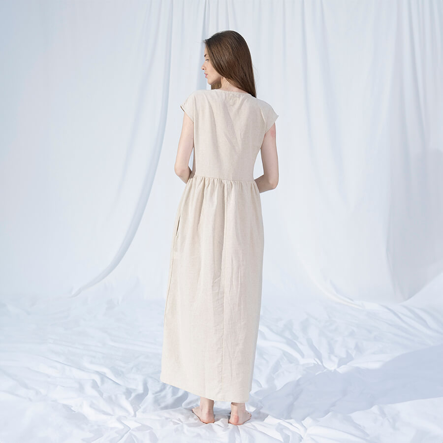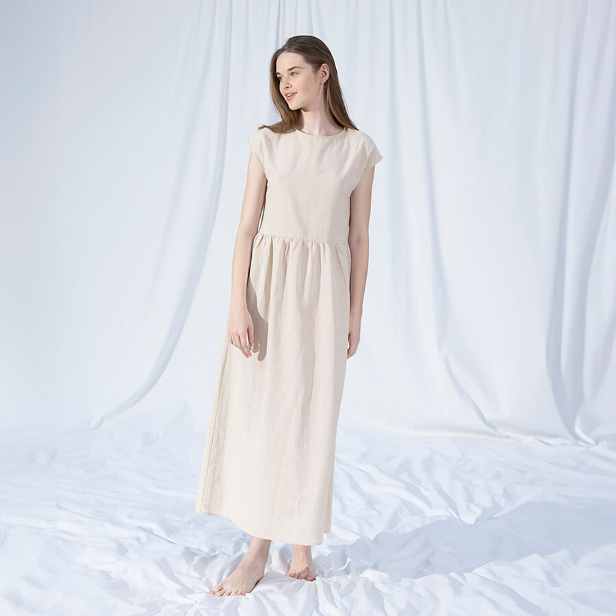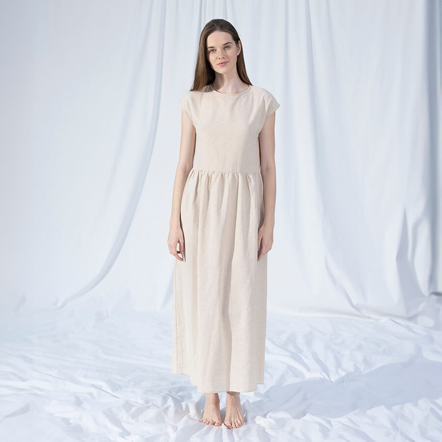 Penelope by Serli Keçoğlu Keten Elbise Ekru L-XL