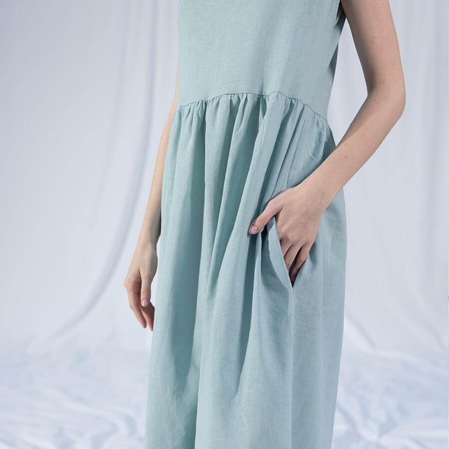 Penelope by Serli Keçoğlu Keten Elbise Mint L-XL