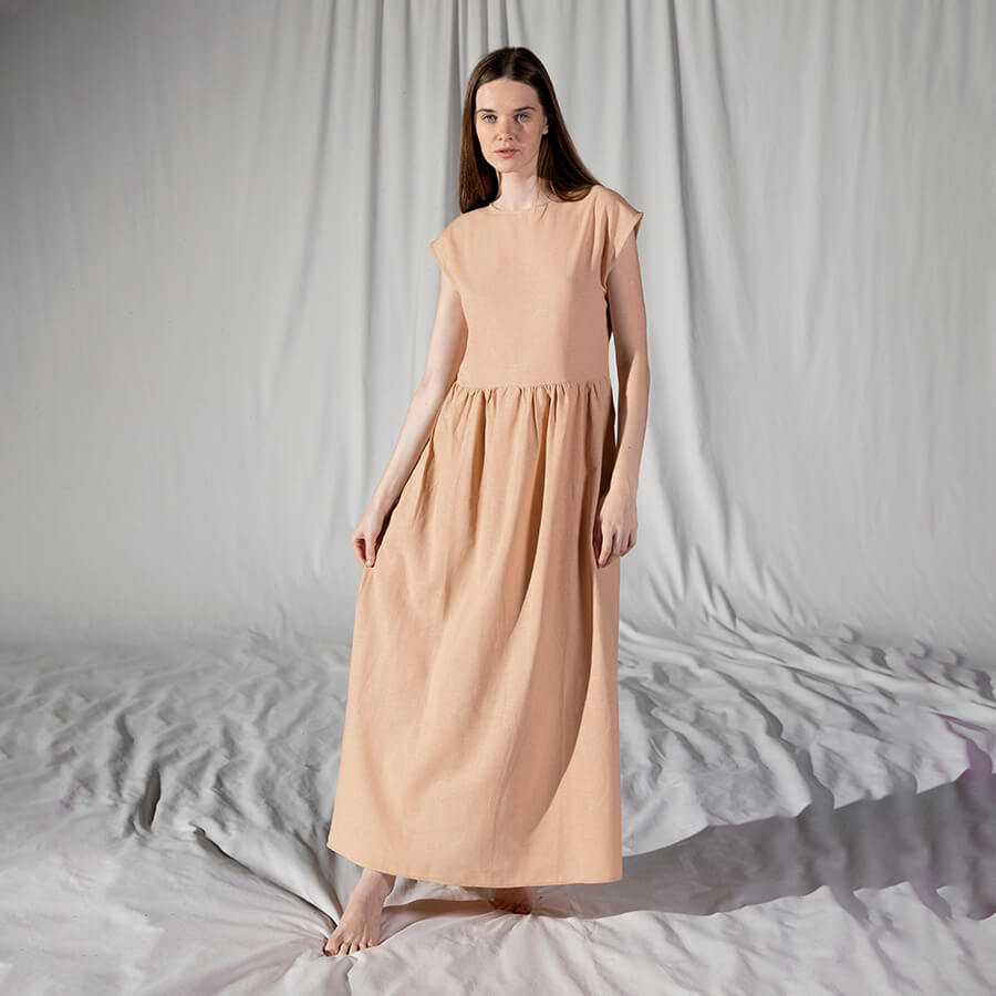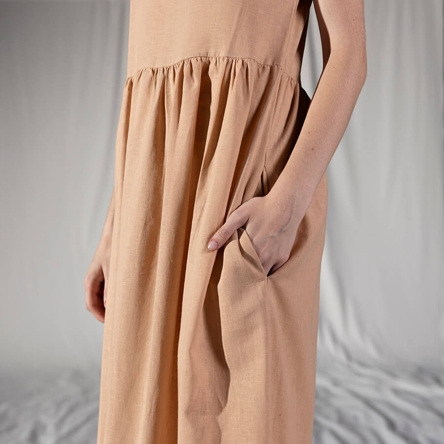 Penelope by Serli Keçoğlu Keten Elbise Somon L-XL