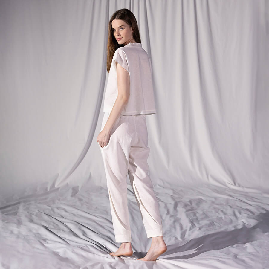 Penelope by Serli Keçoğlu Keten Kısa Kol Bluz Ekru S-M