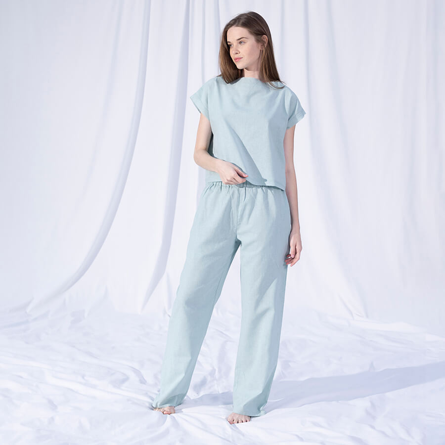 Penelope by Serli Keçoğlu Keten Kısa Kol Bluz Mint L-XL