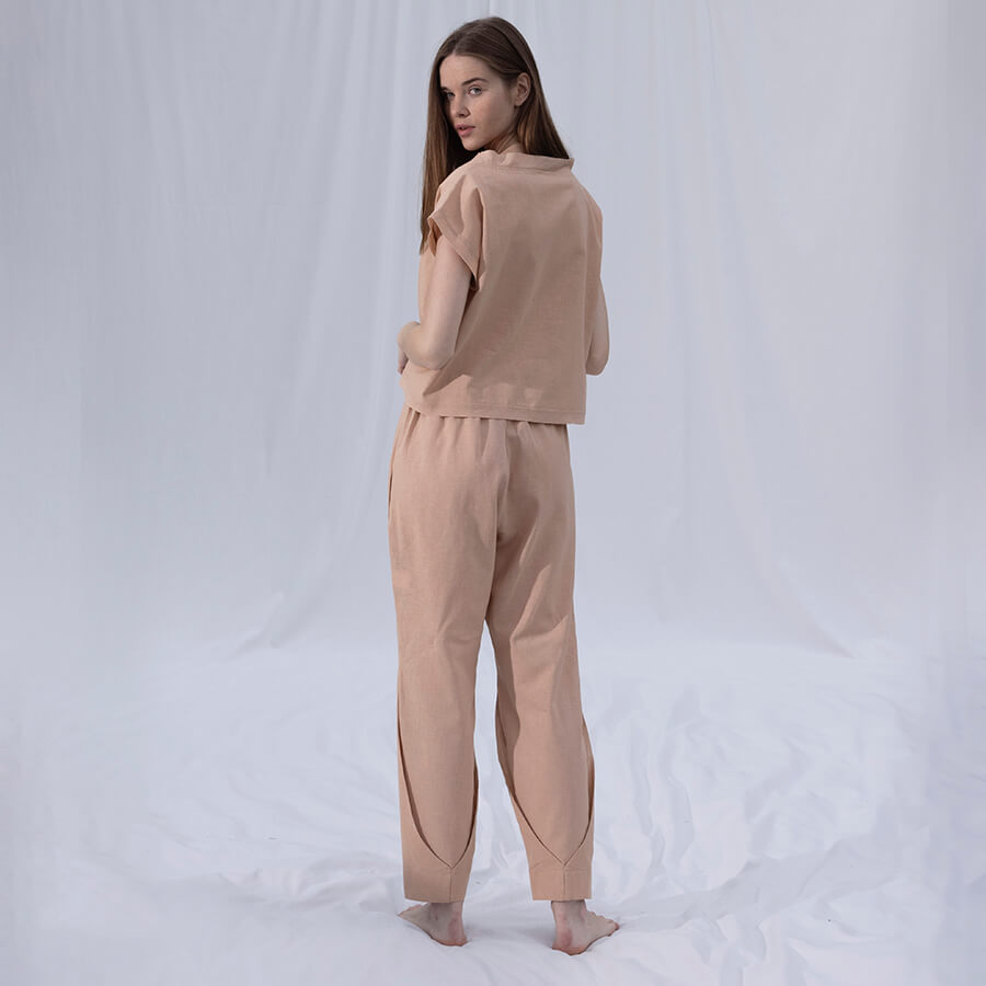 Penelope by Serli Keçoğlu Keten Kısa Kol Bluz Somon L-XL