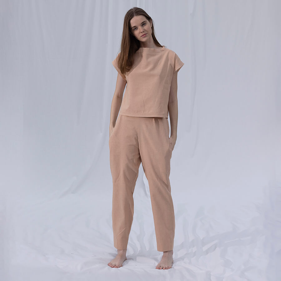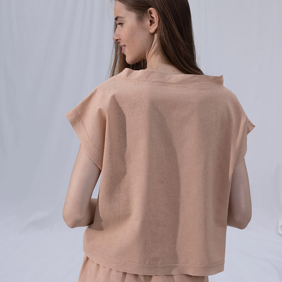 Penelope by Serli Keçoğlu Keten Kısa Kol Bluz Somon S-M