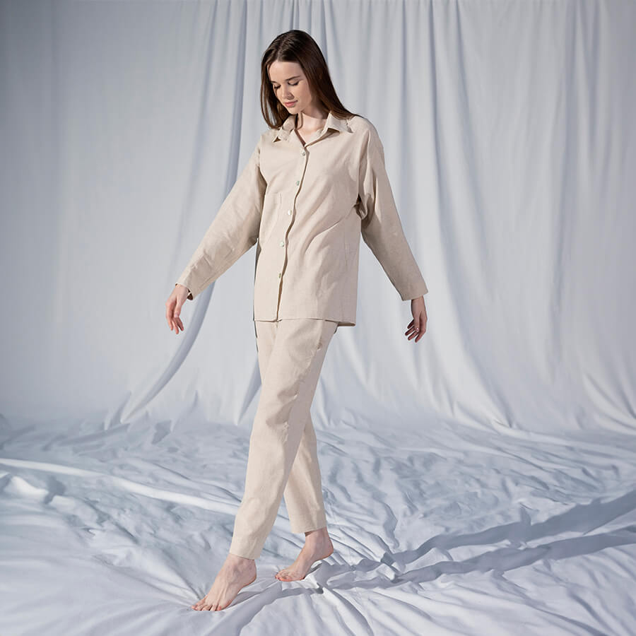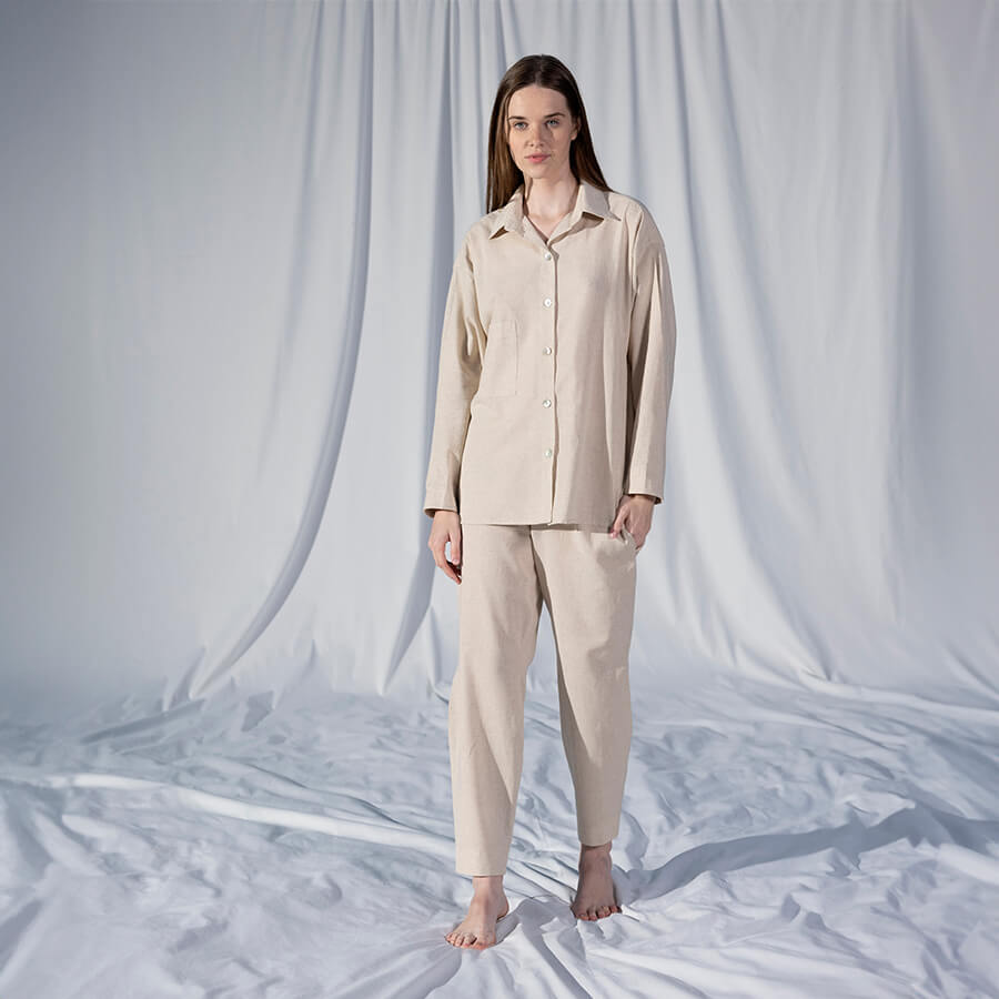 Penelope by Serli Keçoğlu Keten Uzun Pantolon Ekru S-M