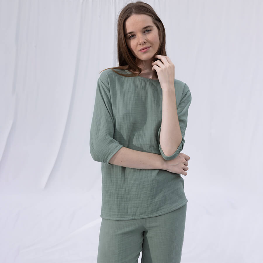Penelope by Serli Keçoğlu Müslin 3/4 Kol Bluz Çağla L-XL