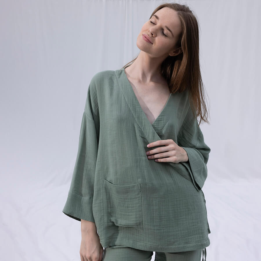 Penelope by Serli Keçoğlu Müslin Kruvaze Kimono Kısa Çağla L-XL
