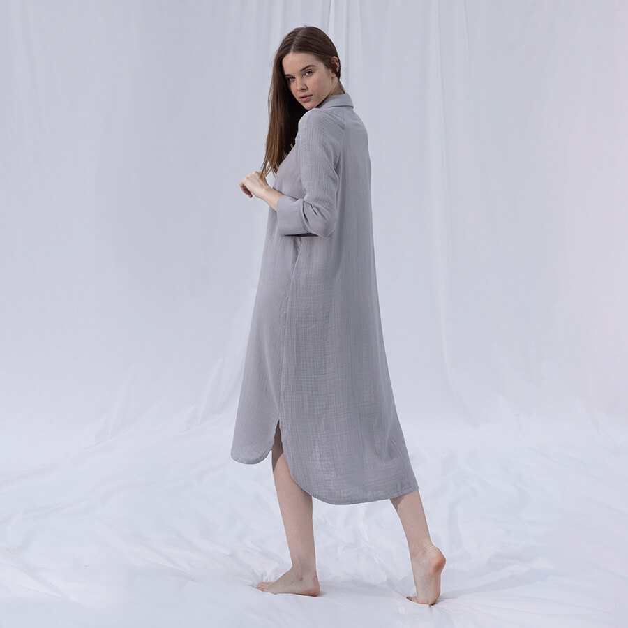 Penelope by Serli Keçoğlu Müslin Uzun Düğmeli Elbise Açık Gri L-XL